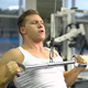 Energetic bodybuilder lifting heavy weights in the gym