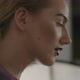 Close-up of professional model posing for camera during fashion photoshoot in studio