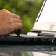 Closeup computer program developer focuses on difficult codes creating new website on notebook against green background