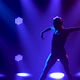 Professional ballerina in black bodysuit gracefully dancing ballet. Shot in dynamic spotlights and smoke on stage. Silhouette of a beautiful slim figure. Slow motion