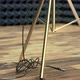 Camera moving up showing professional microphone with microphone boom in sound recording studio. Suitable for vocal recording or radio broadcasting concept.