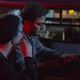 Medium shot of male hacker coding on laptop and young woman sitting nearby telling him what to do