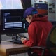 Medium shot of a programmer boy coding on his computer