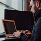 Focused Coder Development Web Application.Programmer Design Internet Online App.Software Online Network Developer.Software Developer Coding On Computer PC And Remote Chatting.Senior Coder Programming.