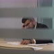 Project manager problem. Unsuccessful presentation. A stain from a cup of coffee. Modern office, greenery. middle plan. High quality 4k footage