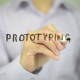 Man, Businessman, entrepreneur, stock trader, analyst or banker writes on transparent wall : Prototyping
