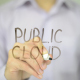 Man, Businessman, entrepreneur, freelancer, software engineer, programmer writes on transparent wall : Public Cloud