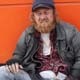 Bearded vagabond sitting by the cart with his belongings and looking around with no purpose