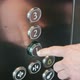 Close up of male hand pushing button on metal panel in the modern elevator
