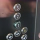 Close up of male hand pushing button on metal panel in the modern elevator