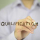 Man, Businessman, entrepreneur, stock trader, analyst or banker writes on transparent wall : Qualification