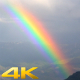 Cinematic 4K. Rainbow optical meteorological phenomenon reflection refraction dispersion sun light water droplets resulting spectrum appearing sky multicoloured sunlight appear directly rainbows circles observer illuminated droplets ground centred line red blue yellow green orange purple pink turquoise navy dark blue light burgundy curve colored colorful coloured colourful hued paint dye lithochromatic staining bright clear mountain valley cloud clouds highlands art