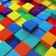 Geometric 3d render simple squares laid with lines on surface. Multicolored boxes in dynamic lighting with bright highlights. Digital wall creative presentation made of blocks