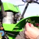 Raspberry farm. The agronomist inspects the berry harvest. Collecting raspberries