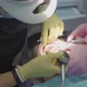real treatment. the dentist brushes teeth of patient. regular care and prevention of dental diseases. modern professional clinic.