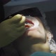 real treatment. reportage. the dentist treats the patient with caries, drills the tooth and installs a filling. modern professional clinic.