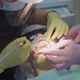real treatment. the dentist brushes teeth of patient. regular care and prevention of dental diseases. modern professional clinic.