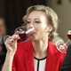 Romantic couple clinking glasses and drinking red wine at restaurant