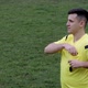 Referee showing a yellow, red cards and removing player while gaming. Concept of sport, rules violation, controversial issues, obstacles overcoming.