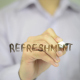 Man, Businessman, entrepreneur, stock trader, analyst or freelancer writes on transparent wall : Refreshment
