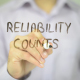Man, Businessman, entrepreneur, stock trader, analyst or banker writes on transparent wall : Reliability Counts