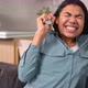 Relocation concept. Excited lady moving in new home or apartment. Overjoyed woman homeowner rejoicing in front of the camera and feeling great