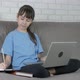 Remote study. A view of a pensive teen solve her tasks from the computer and writing something in her copybook at home.