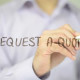 Man, Businessman, entrepreneur, stock trader, analyst or banker writes on transparent wall : Request A Quote