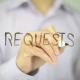 Man, Businessman, entrepreneur, stock trader, analyst or banker writes on transparent wall : Requests