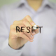 Man, Businessman, entrepreneur, stock trader, analyst or banker writes on transparent wall : Reset