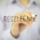 Man, Businessman, entrepreneur, stock trader, analyst or banker writes on transparent wall : Resilience