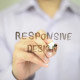 Man, Businessman, entrepreneur, freelancer, software engineer, programmer writes on transparent wall : Responsive Design