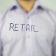 man, businessman, investor writes on transparent wall ( screen ) ” retail “