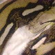 Reticulated python in captivity eating a large mammal wrapped up in powerful grip