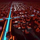 3D Animation of a classic retro arcade computer game city in the 80s style.