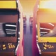 One seamlessly looped animated clip: infinity count of the retro gaming arcade machines in a row moving right to left at morningtime