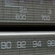 Retro radio dial, searching for stations in different radio frequencies, visible panel with radio stations on side, search light is green and moving in different directions, black receiver, closeup shot