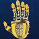 The camera is slowly moving around the robot hand and after the robot hand slowly open.