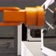Industrial robots for factory automation. A Process of constructing 3d printers on an assembly line. Orange robotic arms programmed to pick and place parts of printers. Modern industrial technology.