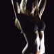 Slow motion of attractive girl circling the trunk and doing body wave
