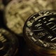 Cinematic rotating shot of bitcoin coins (digital cryptocurrency). Shot on RED Epic Dragon