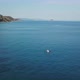 AERIAL WS Rowboat on sea / Elba island, Tuscany, Italy