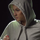 Slow-motion of a runner in hooded sweatshirt