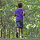 Little boy running away in the woods