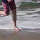Young girl is running on the ocean water