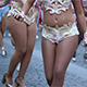 Samba dancing girls performing in the city in front of tourists, on the main downtown street.
