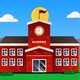 Animation of school building with sun and landscape on blue background. Back to school education concept digitally generated image.