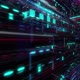 fly through time and space, warp through science fiction binary code particles network. Science and Technology concept. 3D render