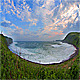 Seascape with storm waves on the evening wideangle shot with fisheye lens in 14 bit RAW video, encoded into Quicktime Photo Jpeg. 30 second realtime version and 12 second 8x timelapse are included.