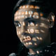 Macro shot of female face with binary code projections